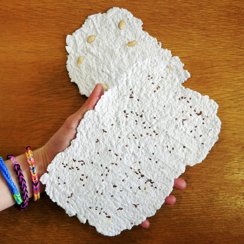 Venez fabriquer votre papier ensemencé réalisé avec les chutes de papier de la bibliothèque et orné des graines de la grainothèque.