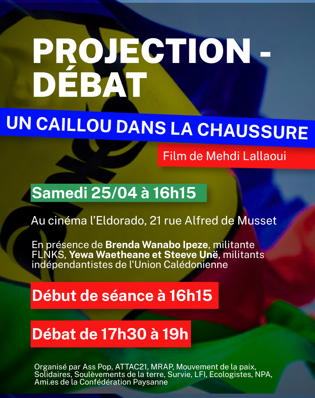 « En kanaky, depuis 2023, le gouvernement de Macron veut imposer le dit Accord Bougival, qui donnera lieu au dégel du corps électoral et la fin de la souveraineté du peuple Kanak sur ses terres ancestrales. Deux ans après les révoltes de 2024 qui ont secouée la Kanaky contre « l’accord Bougival », le film de Mehdi Lallaoui « Un caillou dans la chaussure » retrace cette lutte. Le film revient sur les luttes de 2024 en Nouvelle-Calédonie et la répression politique qui s’en suivit. »