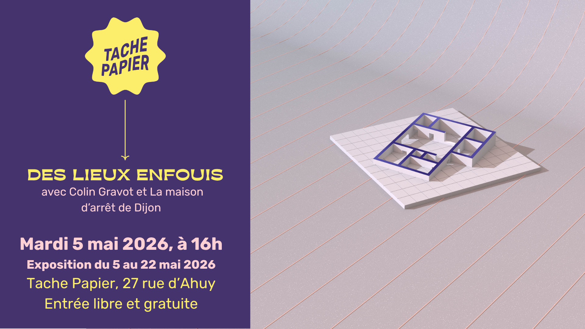 Tache Papier vous invite à la restitution du projet “Des Lieux Enfouis”, en exposition le mardi 5 mai 2026 dès 16h (entrée gratuite) !