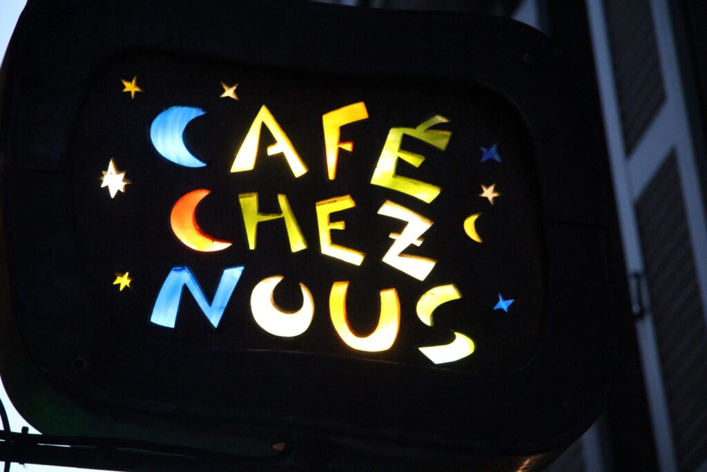 Le samedi 2 mai, on « dévernit » l’expo « Croque le café » qui regroupe des dessins, croquis, aquarelles, sérigraphies, etc. de divers artistes, représentant le Chez Nous et/ou ses habitué.e.s ou personnes de passage.