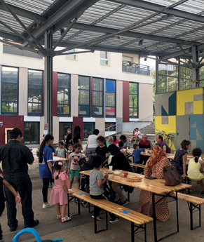 L’espace public du quartier devient alors une grande scène qui prend pour acteurs et actrices celles et ceux qui y vivent. Le spectacle finira place Galilée autour d’un repas partagé et d’un concert.
