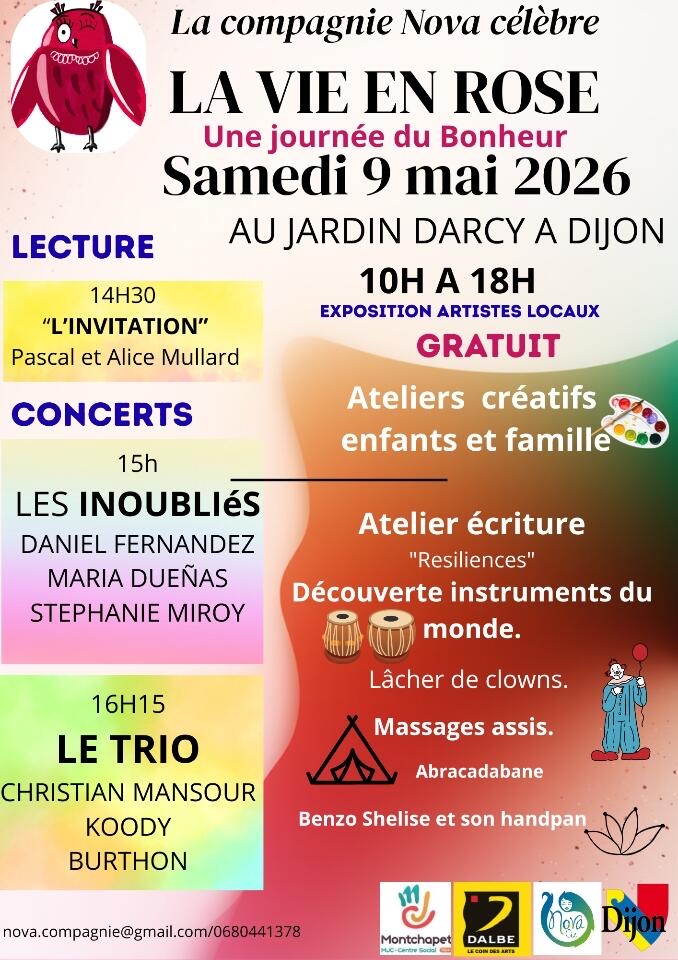 La compagnie Nova vous invite à célébrer La Vie en Rose, une journée placée sous le signe du bonheur, de la créativité et du partage, le samedi 9 mai 2026 au Jardin Darcy à Dijon, de 10h à 18h.