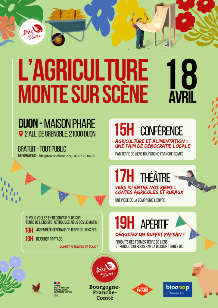 Terre de Liens Bourgogne-Franche-Comté vous propose d’apprendre et d’échanger sur l’agriculture lors d’une rencontre agri’culturelle ouverte à toutes et tous à Dijon, le samedi 18 avril prochain.