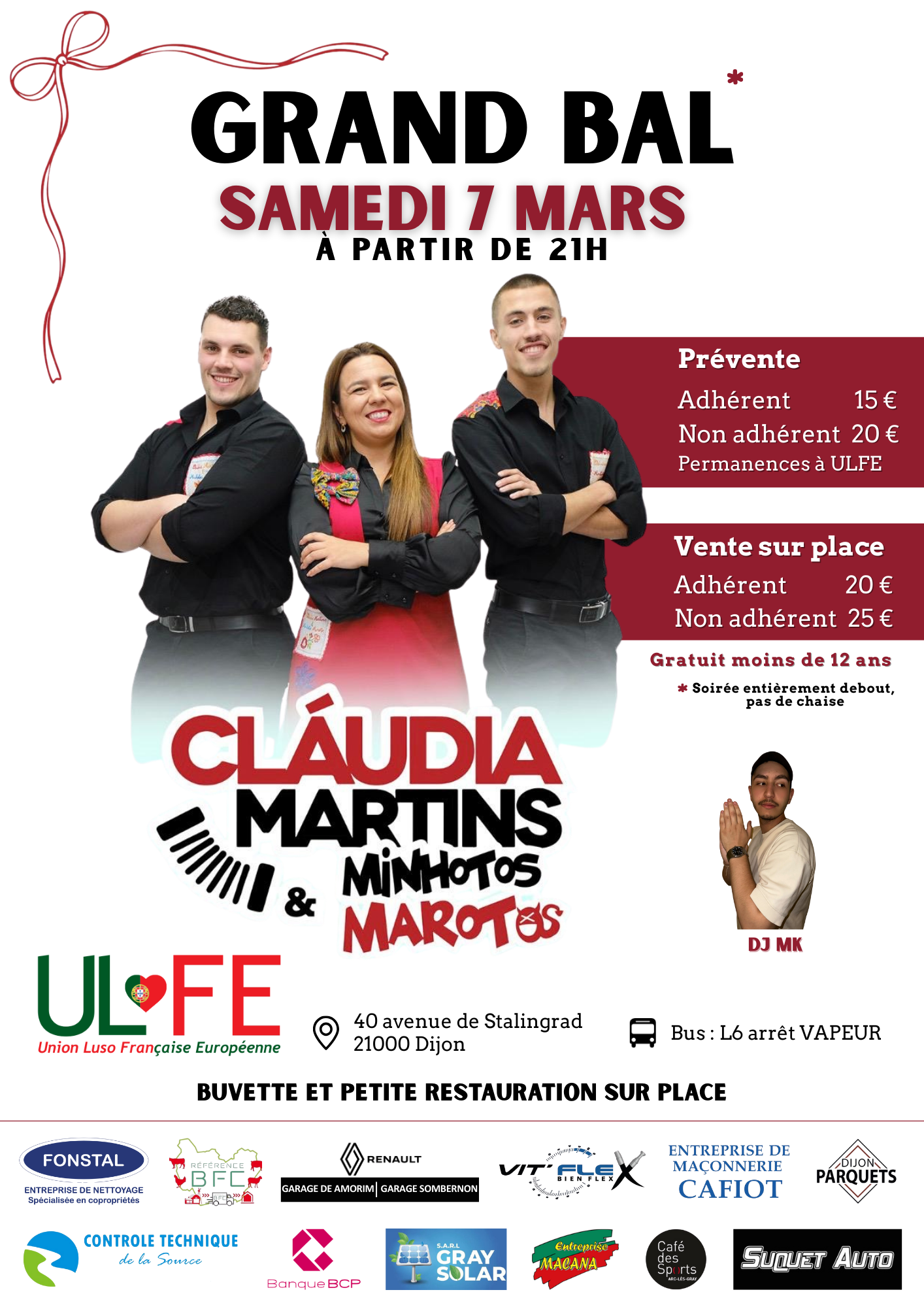 L’association ULFE a le plaisir d’annoncer l’organisation de son Grand Bal le samedi 7 mars prochain, à partir de 21h.