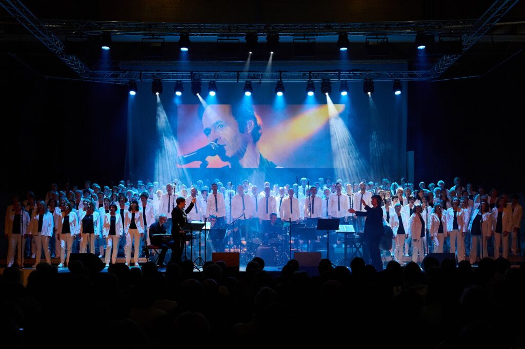 180 Choristes interpréteront dans la très belle salle Romanée Conti du Palais des Congrès de Dijon, les titres les plus emblématiques du répertoire de Jean-Jacques Goldman: