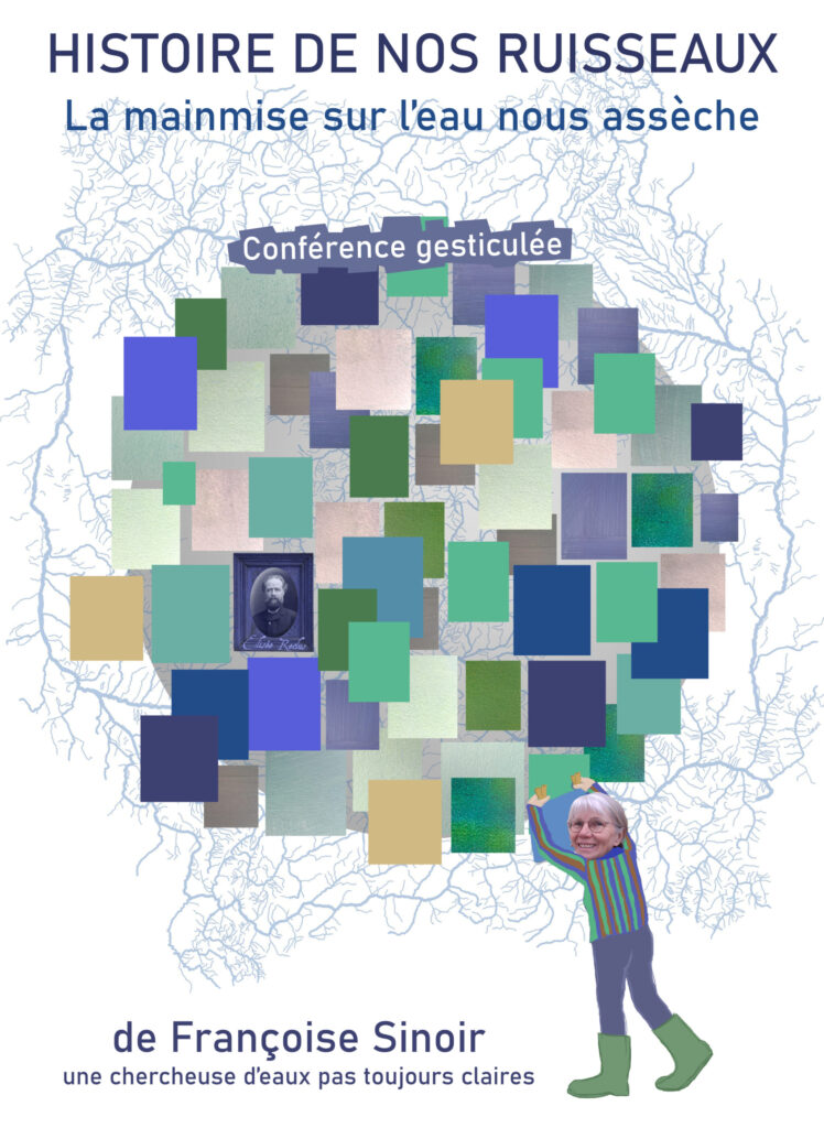 La soirée conviviale commence à 18h30 avec la présentation des 2 associations invitées (FNE21 et Eau Bien Commun) puis une collation est offerte avant le spectacle de la conférence gesticulée à 20h « Histoire de nos ruisseaux; la mainmise sur l’eau nous assèche.