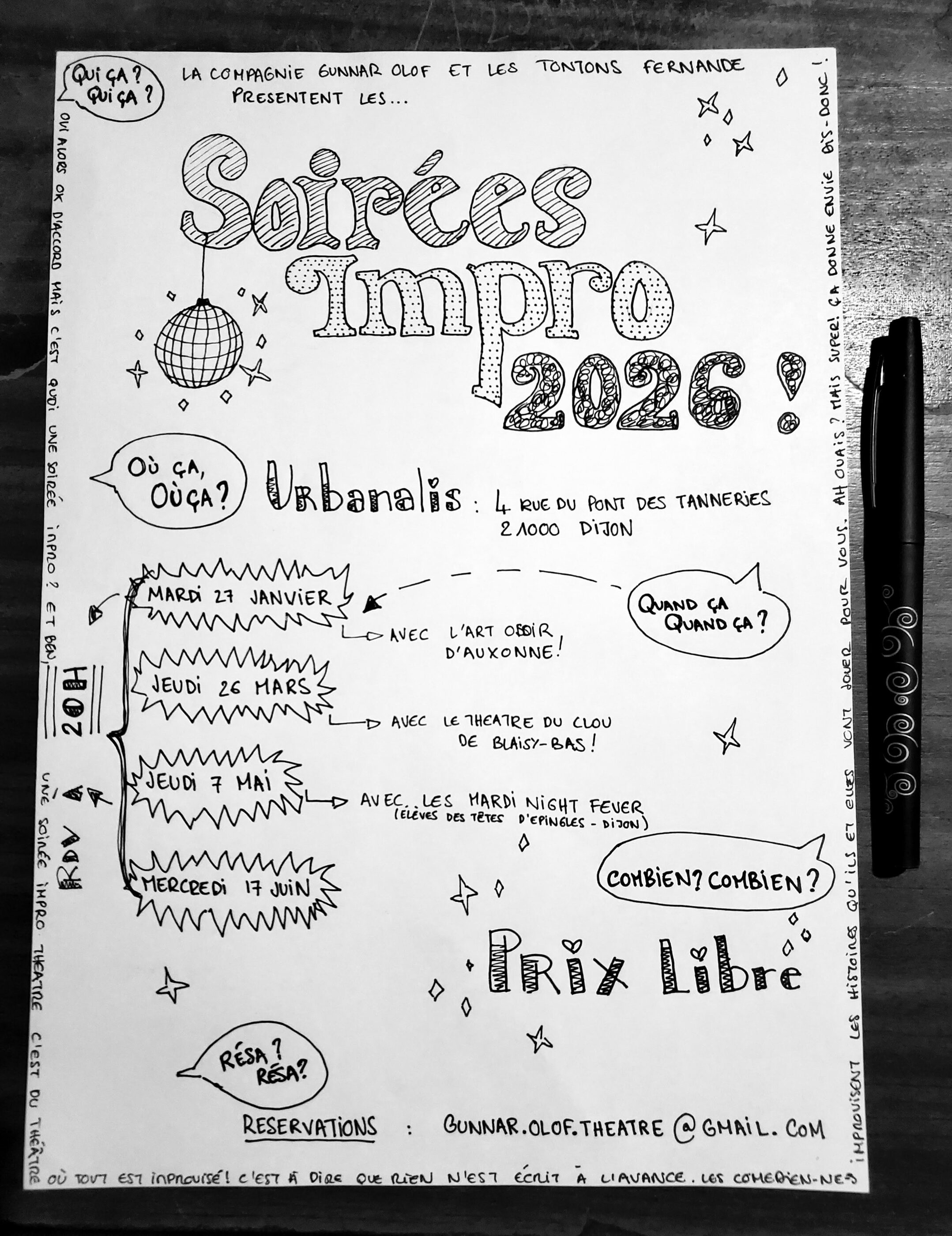 Les Tontons Fernande, élèves de la compagnie Gunnar Olof, montent sur scène pour vous proposer des spectacles d’improvisation vivants, drôles et totalement imprévisibles.