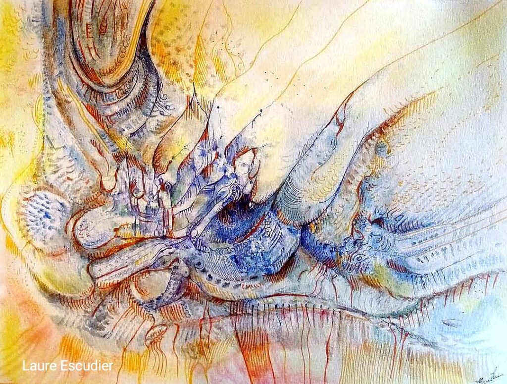 Laure Escudier pratique les arts plastiques (dessin et aquarelle essentiellement), la poésie et la musique (violon, composition, chant, enseignement…) depuis la toute petite enfance.